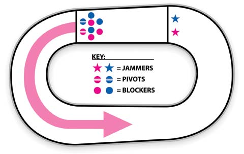 Concrètement : Chaque équipe envoie 5 joueuses sur le track : 1 jammeuse avec une super étoile de la mort qui tue sur son couvre-casque et 4 bloqueuses (dont 1 pivot reconnaissable avec sa bande sur son casque). Les jammeuses sont les seules joueuses à marquer des points. Les bloqueuses, elles, doivent empêcher la jammeuse adverse de les dépasser et donc d